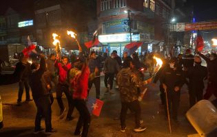 चुनावको मिति घोषणा गर्न माग गर्दै मन्त्री क्वार्टरअगाडि अखिलको प्रदर्शन, मन्त्रीलाई कालो झण्डा