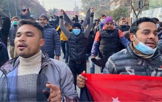 चुनावको मिति घोषणा गर्न माग गर्दै मन्त्री क्वार्टरअगाडि अखिलको प्रदर्शन, मन्त्रीलाई कालो झण्डा
