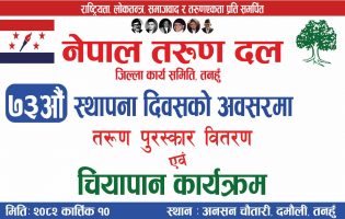 तनहुँमा नेपाल तरुण दलले ७३औं स्थापना दिवस कार्यक्रम गरि मनाउने