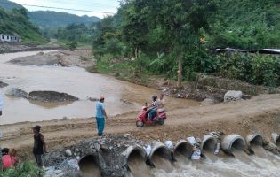 बाढिले पुल बगाएपछि नगरपालिकाद्धारा अस्थायी पुल निर्माण