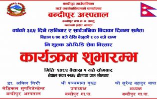 गाउँपालिकाद्धारा संचालित बन्दिपुर अस्पतालमा ३६५ दिन नै बिहान ७ बजेदेखि बेलुका ८ बजेसम्म निःशुल्क स्वास्थ्य परिक्षण हुने