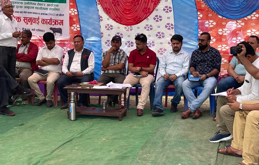 तनहूँ । दाजुभाई गाई फर्म व्यास १० ले नेपाल लाइभस्टक इनोभेसन सेक्टर आयोजना ९ल्क्क्ष्ए० को पुरक अनुदान सहयोगमा संचालित सार्वजनिक सुनुवाई कार्यक्रम फर्मका प्रोपाईटर रमेश तिमल्सेनाको अध्यक्षतामा सम्पन गरेको छ ।