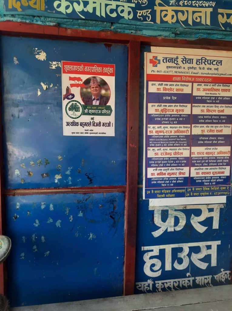 तनहूँ । स्थानिय निर्वाचनको प्रसार प्रसारको क्रममा तनहूँ जिल्लामा निर्वाचन आचार संहिता उल्लंघनका घटनाहरुमा बृद्धि भएका छन् । विशेष गरि शिक्षक तथा कर्मचारीहरु विभिन्न पार्टीको झण्डा बोकेर चुनाव प्रचार प्रसारमा निस्कने, मन्चबाट भाषण गर्ने प्रवृत्ति बढिरहेको बेला शुक्लागण्डकी नगरपालिकाका मेयर पदमा उमेदवार कृष्णराज पण्डितको चुनाव प्रचार प्रसारको क्रममा निर्वाचन आचार संहिता विपरित स्टिकरहरु प्रयोग गरेको पाईएको छ । उहाँको चुनाव प्रसार गर्न आफुले प्रयोग गर्ने निजी कारमा , अन्य निजी कारमा, सार्वजनिक स्थानहरुमा, पानी पुरी चटपट बेच्ने ठेलागाडामा स्टिकर टाँसेको भेटिएको छ । त्यसबारेमा उहाँसग सम्पर्क गर्दा आफुलाई गाडि तथा सार्वजनिक स्थानहरुमा स्टिकर टाँस्न नहुने आफुलाई थाहा नभएको बताउदै स्थानिय नेता तथा कार्यकर्ताहरुसग कुरा गर्ने बताउनुभएको छ ।