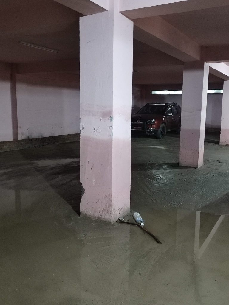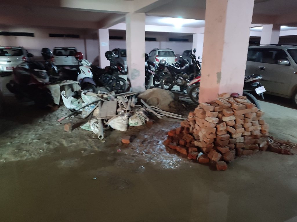 भित्ताभरि पानी रसाएको, पिल्लरहरुमा करिव ३ फिटसम्म पानीले भिजेको, जताततै माकुराले बनाएका जालोहरु, बर्षौैदेखि थुपारिएका निर्माण सामाग्रीका स साना थुप्राहरु , भवनका कोठाकोठामा पानी रसाएर बनेको बिचित्रका चित्रहरु जताततै देख्न देख्न सकिन्छ । बर्षौ बितिसक्दा पनि सर्वसाधारणको लागि पार्किगं खुल्ला नगरिएको उक्त पार्किगंको भुई पनि भग्नावशेष भईसकेको छ ।