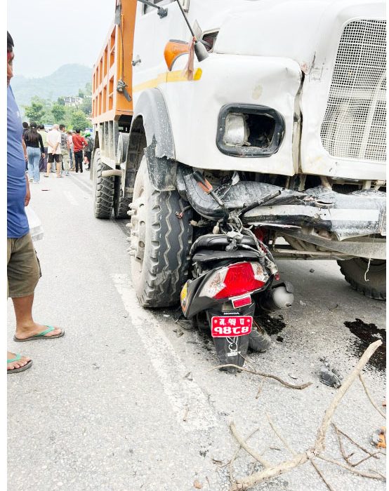 तनहूँ । तनहूँको व्यास नगरपालिका वडा नं. १२ देउरालीमा टिप्परको ठक्करबाट स्कुटर चालकको मृत्यु भएको छ । दमौली तर्फबाट डुम्रे तर्फ आउदै गरेको टिप्परले विपरित दिशातिर आईरहेको स्कुटरलाई ठक्कर दिदा घाईतेको मृत्यु भएको हो ।