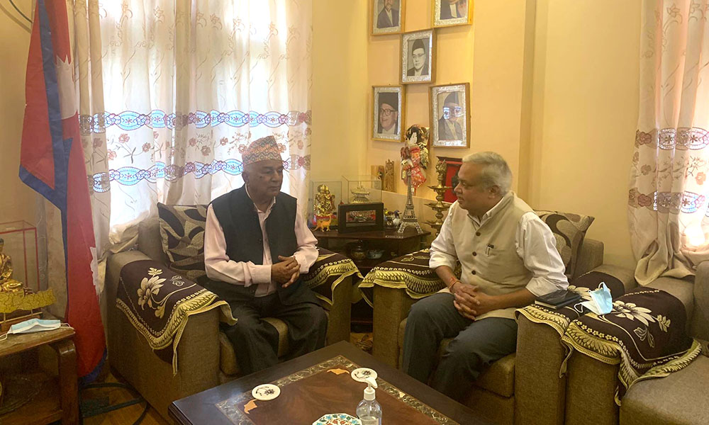 काठमाडौं । नेपाली कांग्रेसका वरिष्ठ नेता रामचन्द्र पौडेल र नेपालका लागि भारतीय राजदूत नवीन श्रीवास्तवबीच भेटवार्ता भएको छ । नवनियुक्त राजदूत श्रीवास्तवले बोहोराटारस्थित निवासमै पुगेर पौडेलसँग शिष्टाचार भेट गर्नुभएको हो ।