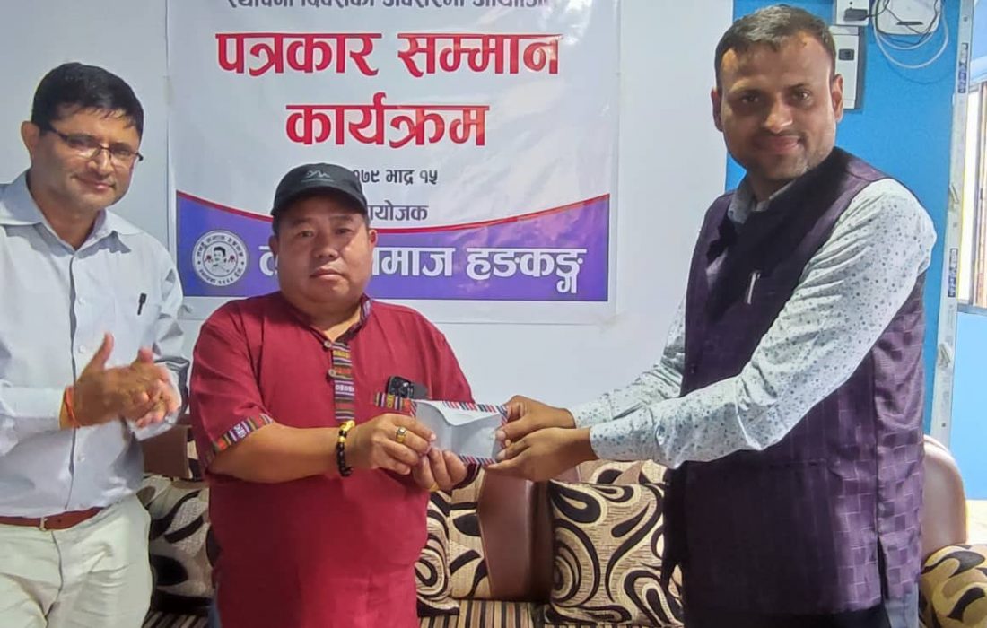 तनहूँ । तनहूँ समाज हङकङ्गका निवर्तमान अध्यक्ष जंगबहादुर थापाले नेपाल पत्रकार महासंघ तनहूँ शाखालाई ५ हजार ५ सय ५५ रुपैया सहयोग गर्नुभएको छ । थापाले उक्त रकम तनहूँ शाखाले स्थापना गरेको कल्याणकारी कोष सहयोग गर्नुभएको हो ।