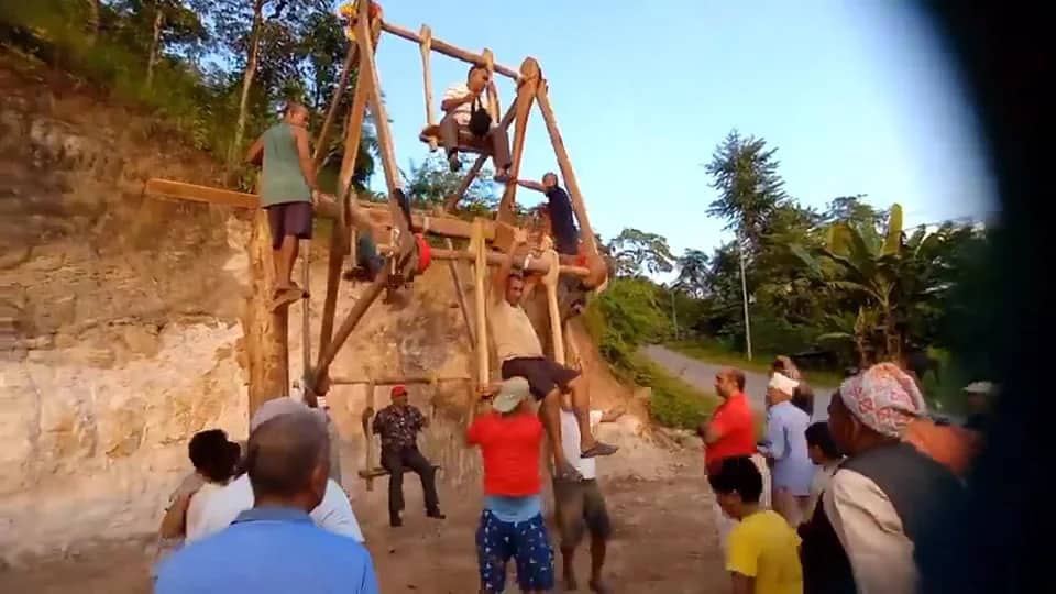 तनहूँ । व्यास नगरपालिका ११ रानीगाउँमा युवाहरुको सक्रियतामा रोंटे पिगं निर्माण गरिएको छ । व्यास ११ रानीगाउँ स्थित दरै समाजको भवन मा ३२ बर्षपछि सुन्दरी सामुदायिक वन उपभोक्ता समिती अध्यक्ष बिष्णु बहादुर पोख्रेलको नेतृत्व रस्थानियहरुको सक्रियतामा उक्त पिंग निर्माण गरिपछि स्थानिय मासिनसहरु तथा अन्य स्थानका मानिसहरु पनि पिंग खेल्न आउने गर्नुभएको छ । दशैको समयमा झरि परेपनि आकाश खुल्नासाथ मानिसहरु पिंग खेल्न झुम्मिने गरेको पाईएको छ ।