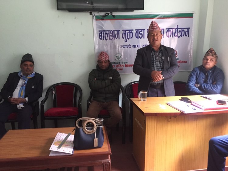 एकीकृत हरित विकास संस्थाले गरेको अनुगमन तथा निरिक्षणवाट वडालाई वालश्रम मुक्त अभियान घोषणा गरिएको हो । संस्थाले वडाभरको टोल तथा क्षेत्रमा गएर वालवालिकाको अवस्थाको वारेमा अध्यनन तथा अनुसन्धान गरेर वडालाई वालश्रममृक्त अभियान घोषणा गरेको हो ।