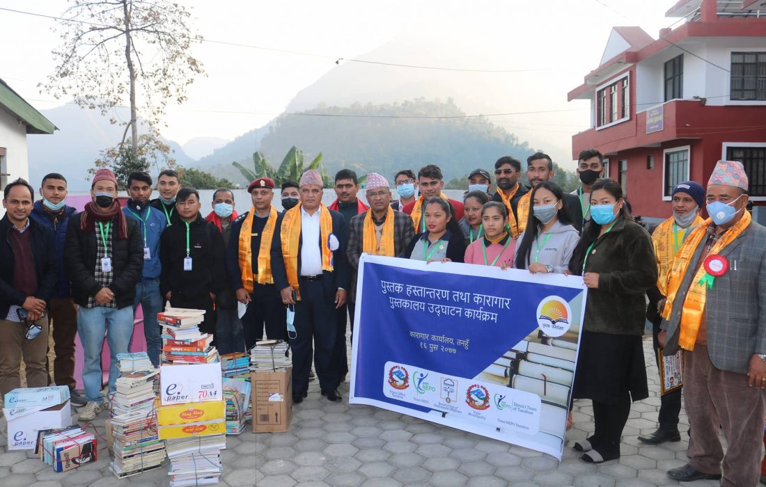 तनहूँ । टिम नेपो तनहूँको सक्रियतामा तनहूँको जिल्ला कारागारका कैदिबन्दिहरुलाई लक्षित गरि बिहिवार एक कार्यक्रमका बिच पुस्तकालय स्थापना गरियो । व्यास नगरपालिकाका प्रमुख बैकुण्ठ न्यौपानेको प्रमुख आतिथ्यितामा कारागारमा रहेका कैदीहरुको सामाजिक तथा बौद्धिक स्तर सुधार गर्नको लागि करिब १ लाख रुपैया बराबरका पुस्तकहरु भएको पुस्तकालय स्थापना गरिएको हो । नगर प्रमुख न्यौपानेले प्रमुख जिल्ला अधिकारी सागर आचार्य र जेलर नारायण अधिकारीलाई पुस्तक हस्तान्तरण गर्दै युवापुस्ताको काम सराहनिय भएको बताउनुभएको थियो ।