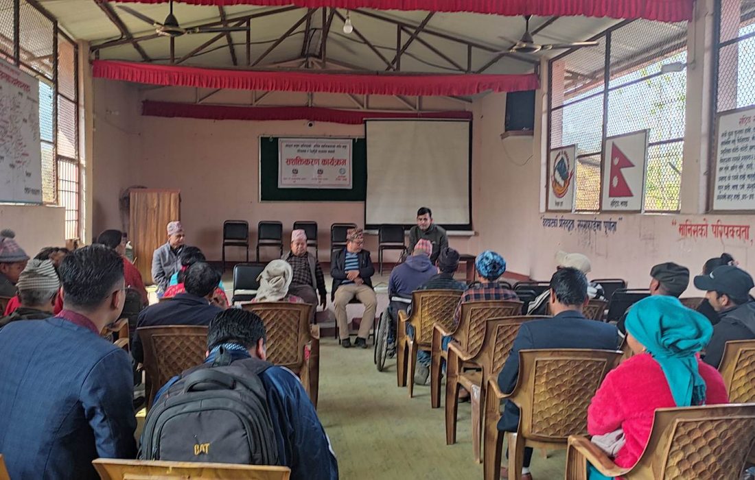 तनहूँ । रिसेड तनहूँको आयोजना र सामाजिक विकास कार्यालय तनहूँको आर्थिक सहयोग देवघाट गाउपालिकामा अपांगता व्यक्तिहरुलाई समन्वय, सहजीकरण तथा अभिमुखिकरण छलफल सप्पन्न भएको छ । पालिकाका ५ वटा वडाका १४ जना व्यक्तिहरुलाई सहभागी भएको उक्त कार्यक्रममा गाउँपालिकाका अध्यक्ष तिल बहादुर थापाले आफु अपाङ्गताको सरोकार र अधिकार प्रति सकारात्मक रहेको बताउनुभएको थियो।