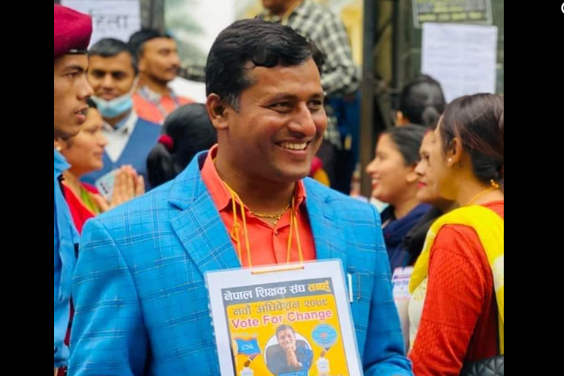 शिक्षकहरुको हकहितका लागि महत्वकांक्षी योजना पेश गर्दै निर्वाचनमा होमिनुभएका भट्टराई तनहूँको म्याग्दे गाउँपालिका वडा नंं ६ को रत्न माध्यामिक विद्यालयको प्र.अ. हुनुहुन्छ ।
