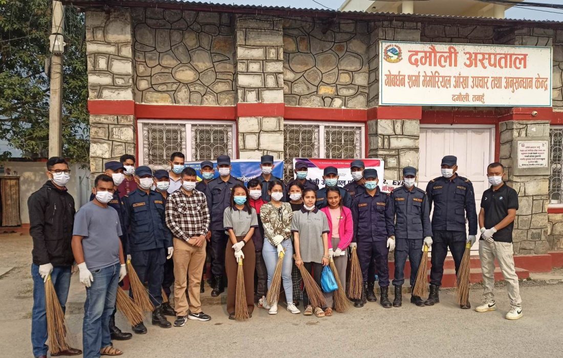 तनहूँ । टिम नेपो तनहूँको आयोजनामा व्यास नगरपालिका वडा नंम्वर ३ स्थित दमौली बजारमा रहेको दमौली अस्पताल परिसरमा वृहत सरसफाइ कार्याक्रम सम्पन्न गरेको छ। उक्त कार्यक्रममा व्यास नगरपालिका वडा नंम्वर ३ का वडा अध्यक्ष अनुप राना प्रमुख अतिथि रहेको हुनुभएको थियो। त्यसै गरी विशिष्ठ अतिथिमा दमौली अस्पतालका प्रशासनका प्रमुख डा. दिवस ढकाल, जिल्ला प्रहरी कार्यालयका प्रतिनिधि भरत पौडेल र अतिथिमा दमौली अस्पतालका सुरक्षाकर्मी घन बहादुर बस्नेत रहनु भएको थियो।
