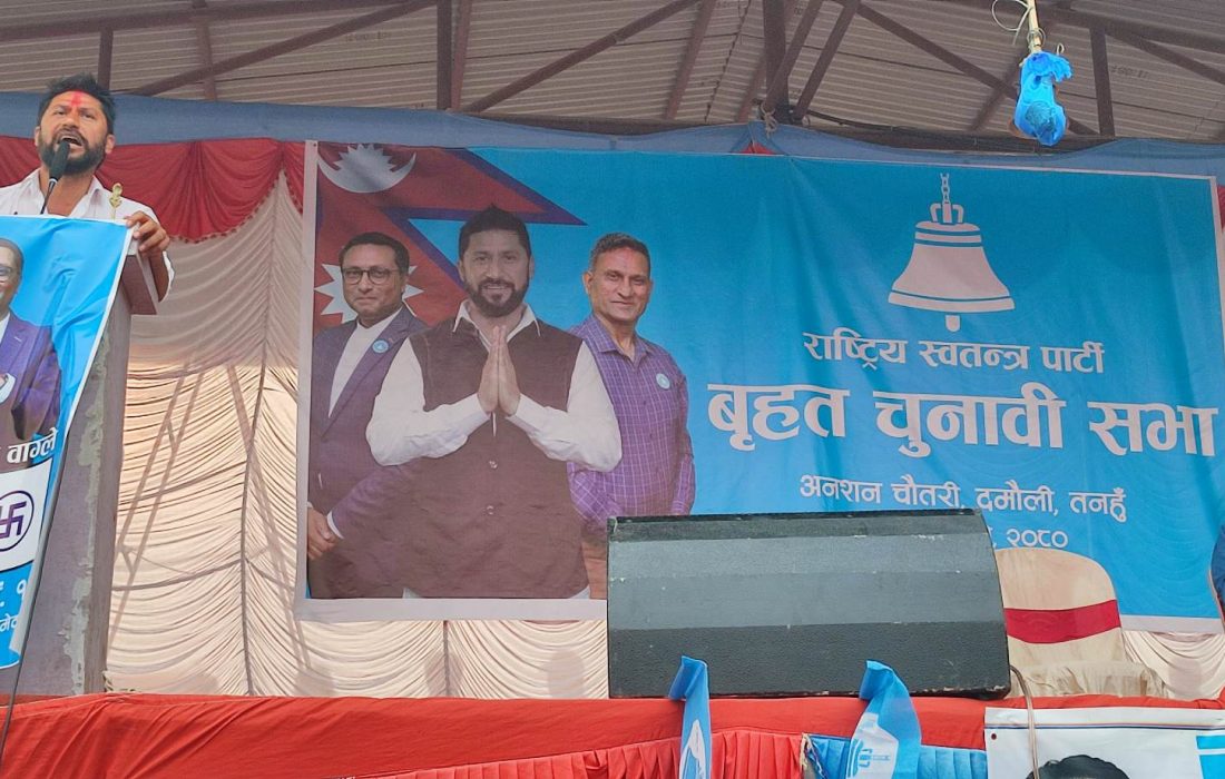 तनहूँ । ६ महिनामा १२ लाख भोट ल्याएर रास्वपाले गरेको क्रान्तिलाई डा. स्वर्णिमलाई विजय गराएर तनहूँले उचाईमा पुरयाउने राष्ट्यि स्वतन्त्र पार्टीका सभापति रवि लामिछानेले विश्वास रहेको बताउनुभएको छ । आज तनहूँको दमौलीमा राष्ट्रिय स्वतन्त्र पार्टीको बृहत चुनावी सभा लामिछानेले उक्त कुरा बताउनुभएको हो । आमसभामा लामिछानेले हवाई चप्पल पड्काएर हिड्ने नेताहरु आज बिना कमाई हवाईजहाज चार्जर गरेर हिड्न सक्ने भएकोले ति नेताहरुको जयजयकार गर्न जरुरी नरहेको पनि बताउनुभएको थियो ।