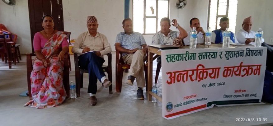 कार्यक्रममा प्रमुख अतिथि श्रेष्ठ, गाउँपालिकाका उपाध्यक्ष तथा कार्यक्रमका विशिष्ठ अतिथि बालकृष्ण घिमिरे, विभिन्न सहकारीका अध्यक्ष , संचालक र ब्यवस्थापकहरुबाट विभिन्न बिषयमा आ- आफ्नो धारणा राख्नु भएकाे थियाे।