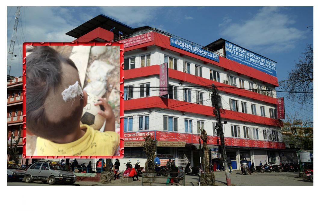 मेरो नाती खेल्दा लडेर टाउकोमा चोट लागेर उक्त अस्पताल लगियो , परिवारको सल्लाहमा नै टाउको संवेदनशिल अंगमा केहि छ कि भनेर २ दिन भर्ना गरेर पनि राखियो । सिटी स्क्यान लगायत अन्य चेकजाँच गरेर हेर्दा टाउकोमा केहि नभएको सामान्य बाहिरी चोट देखियो । सिटी स्क्यान लगायतका सबै बिलहरु पेमेन्ट गरे पश्चात टाउकोमा लागेको चोटमा टाँका लगाउनुपर्छ भनियो । बच्चालाई टाँका लगाएर ल्याएपछि अस्पताल प्रशासनले जुन प्रकारले बिल थम्यायो त्यो देख्दा अचम्म लाग्यो । तस्विरमा देखिएको टाँका लगाएको भनौ कि के भनौ यस्को शुल्क मात्र ७५ हजार तिर्नुपर्छ भन्यो । हामी दंग परेर अस्पताल प्रशसानसग कुरा गर्दा एक जना डा. राजन शर्मा भन्नेले निकै कडा रुपमा प्रस्तुत हुदै मेजर अपरेशन होस् कि टाँका होस् हामी त्यति नै पैसा लिन्छौ भनेर हामी बिरामीका आफन्तलाई निकै तर्साउनुभयो । ठिक छ हामी हाम्रो बच्चाको उपचार त ७५ हजार होईन ७५ लाख लागेपनि गर्ने थियौ तर टाँका लगाएको त्यत्रो रकम ? बिरामीको आफन्तलाई पहिल्यै खबर गर्नुपर्दैन ? भनेर प्रश्न गर्दा उहाँहरु टसको मस हुनुभएन, यो त चरम ठगी भयो , बोल्न नसक्ने मान्छे ? सानो चोटपटकको लागि लाखौ रकम तिर्न नसक्ने मान्छेले के मेट्रो सिटी अस्पतालमा उपचार गर्न नै जान नपाउने ? अस्पतालको चरम शोषणको आवाज कहि उठाउनै नपाईने ? व्यास १० कुमलटारीका गोपाल थापा प्रश्न गर्नुहुन्छ ।