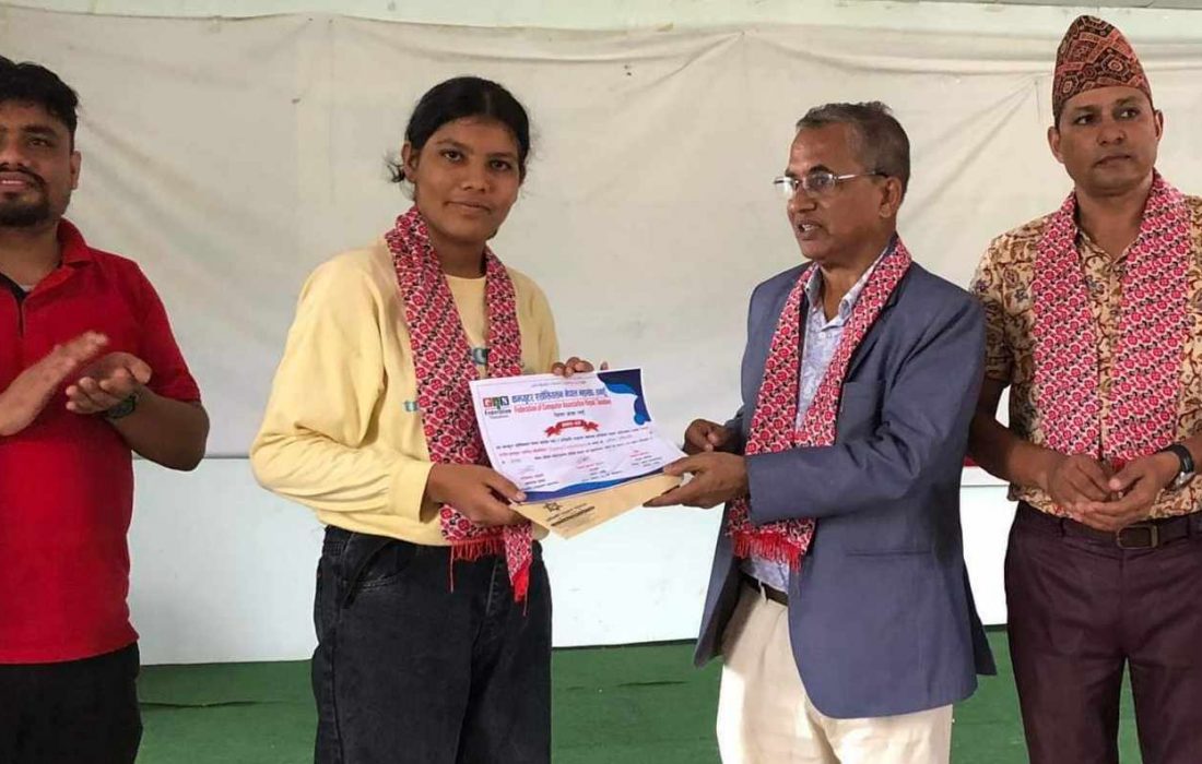 तनहूँ । कम्प्युटर एसोसिएसन महासङ्घ तनहूँ र आदिकवि भानुभक्त क्यम्पस दमौलीको आयोजनामा जिल्ला स्तरीय टाइपिङ प्रतियोगिता समपन्न भएको छ । तनहूँका विभिन्न विद्यालयका साथै भर्खरै एस ई ई दिएर बसेका ६७ जना बिद्यार्थी सहभागी प्रतियोगितामा शुक्लागण्डकी खैरेनीटार स्थित सोनी कम्प्युटरकी मनिला अधिकारीले १५ मिनेटमा ३०७ शब्द टाइप गरी प्रथम स्थान हासिल गर्न सफल हुनुभएको छ । त्यसैगरि बिग कम्प्युटर दमौलीका समीर रोका ले २७३ शब्द र गोल्डेन कम्प्युटर दमौलीमा की निशा आचार्यले द्वारा २६९ शब्द टाइप गरी क्रमसः दृतिय र तृतीय स्थान हासिल गर्न सफल हुनुभएको छ ।