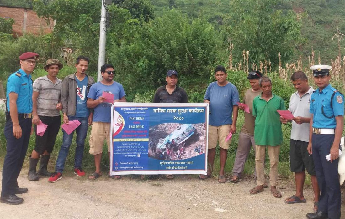 १२ भाद्र । तनहूँ । ट्राफिक प्रहरी कार्यालय तनहूँले तनहूँ जिल्लाका विभिन्न स्थानहरुमा सुरक्षित ग्रामीण सडक यात्रा र सवारी हामी सबैको जिम्मेवारी कार्यक्रम २०८० संचालन भईरहेको छ । भाद्र १० गतेदेखि सुरु भएको कार्यक्रममा सवारी मेकानिकल चेक जाच, विमा कागज चेक जाँच, हुट अनुगमन, सिट अनुगमन, सिट क्षमता यात्रु अनुगमन, बढि भाडा लगाएत जनचेतना मुलक कार्यक्रमहरु गरिने जिल्ला प्रहरी कार्यालय तनहूँका प्रमुख वरिष्ठ प्रहरी नायव निरीक्षक राजिव बिष्ट जानकारी दिनुभयो । ग्रामीण सडक खण्डमा लक्षित कार्यक्रममा यात्रुहरुका गुनासाहरु सुन्ने पनि वरिष्ठ प्रहरी नायव निरीक्षक राजिव बिष्टले बताउनु भएको छ ।