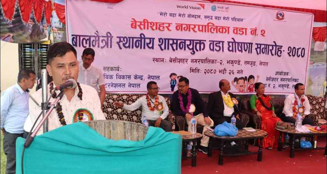 बेसीशहर वडा नम्बर २ का वडा अध्यक्ष मदन रानाको अध्यक्षतामा भएको बालमैत्री वडा घोषण कार्यक्रममा स्वागत वडा सदस्य गमानसिङ कंडेलले र संचालन वडा सदस्य रिता अधिकारीले गर्नुभएको थियो ।