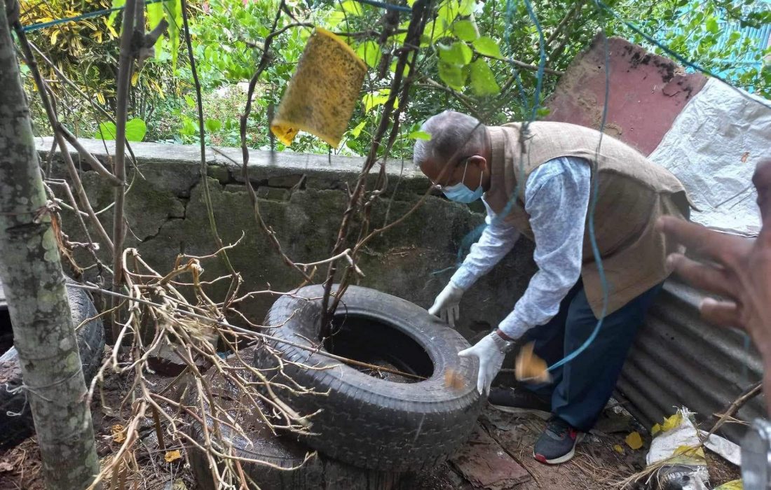 ११ असोज । तनहूँ । दमौली बजारमा डेंगुको संक्रमण बढ्दै गएपछि तनहँुको व्यास नगरपालिकाले लामखुट्टे खोज र नष्ट गर अभियान तीव्र पारेको छ । नगरपालिकाले बजारी क्षेत्रहरुमा रहेका वडाहरुमा डेंगु रोकथाम र न्यूनिकरणका लागि सरसफाइ देखि सचेतना कार्यक्रम सँगै लामखुट्टे खोज र नष्ट गर अभियान तीव्र पारेको हो । नगरपालिकाले बुधबार देखि सबै वडामा सामाजिक संघसंस्था,विद्यालय,स्वास्थ्य संस्था, टोल संगठन,राजनीतिक दललगायतको सहभागीतामा घर–घरमा पुगेर डेंगु सार्ने लामखुट्टेको लार्भा खोज्ने र नष्ट गर्ने अभियान सञ्चालन गरिएको नगरप्रमुख वैकुण्ठ न्यौपानेले बताउनुभयो । उहाँले भन्नुभयो ,“ प्रदेश सरकारबाट खटिएका चिकित्सक सहितको विशेष टोलीलाई वडाका जनप्रतिनिधिको नेतृत्वमा घरघरमै पुगेर बिरामीको स्वास्थ्य जाँच गर्ने गरिएको छ । यता तनहूँ प्रशासनको समन्वयमा दमौली बजारमा सरसफाइको कार्य तीव्र पारिएको छ । ”