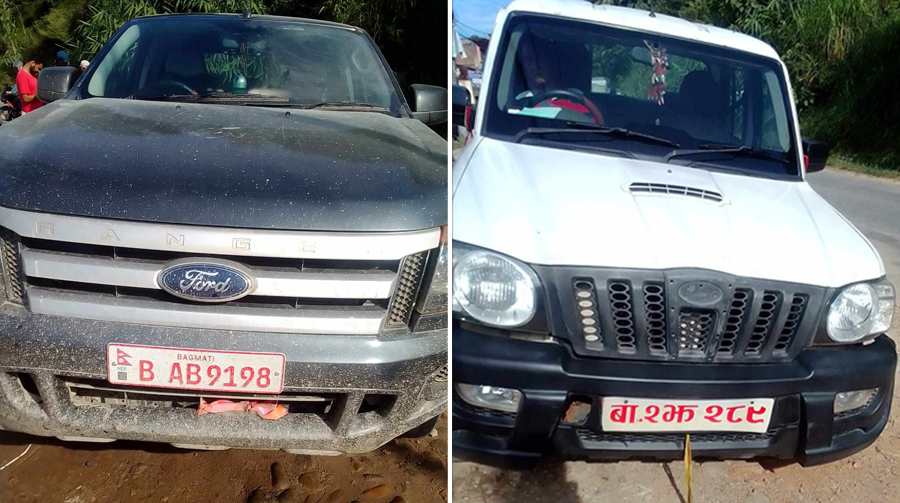 जिल्ला समन्वय समितिको बा२झ २८९ र बागतमी प्रदेश बीएबी९१९८ नम्वरको गाडीसहित कुन्दुरटार पालुङटार सिंचाइ आयोजनाको गण्डकी प्रदेश एएए ४७२६ नम्वरको मोटरसाइकल र पूर्वाधार कार्यालयको प्रदेश ३०२ ००१ब३६४० मोटरसाइलक नियन्त्रणमा लिइएको उहाँले जानकारी दिनुभयो ।