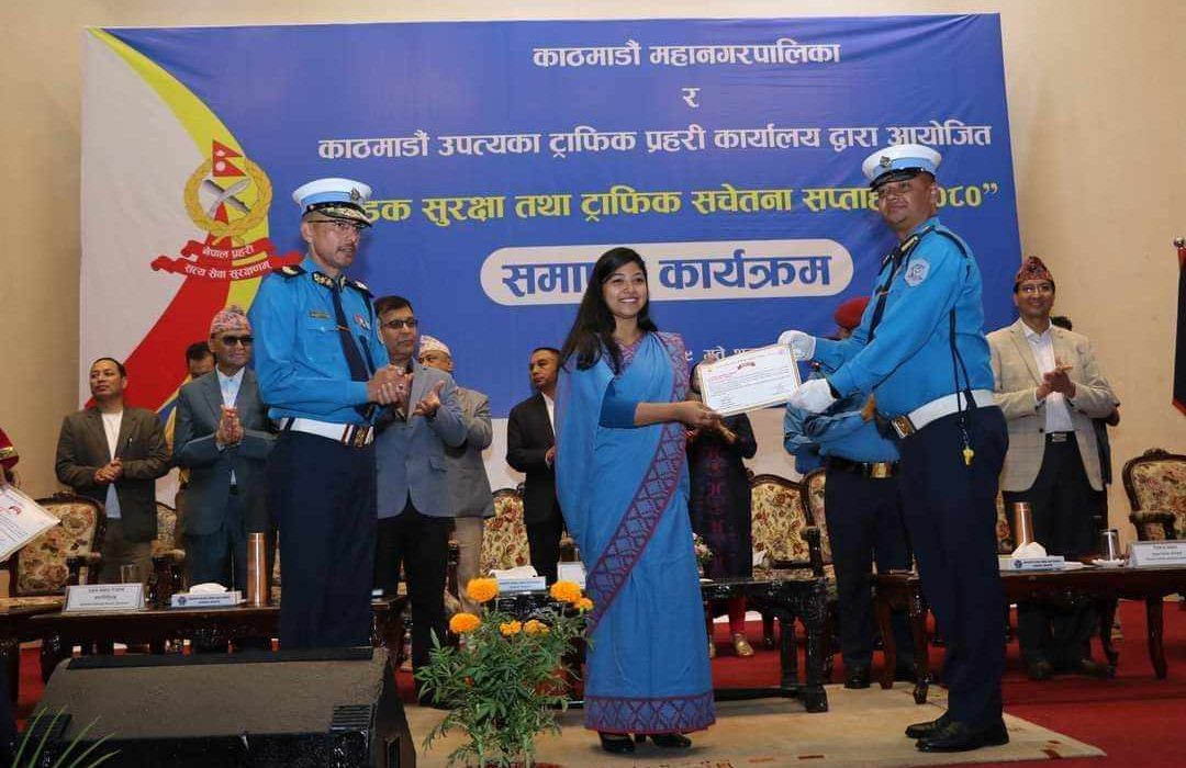 आरजु पौडेल । १९ असोज । काठमाडौं । काठमाडौं उपत्यकामा साताव्यापी सञ्चालित “सडक सुरक्षा तथा ट्राफिक सचेतना सप्ताह – २०८०” शुक्रबार एक कार्यक्रमका बिच समापन भएको छ । काठमाडौं महानगरपालिकाका उपप्रमुख सुनिता डंगोलको प्रमुख आतिथ्यमा काठमाडौंको प्रदर्शनी मार्ग स्थित राष्ट्रिय सभागृहमा औपचारिक कार्यक्रम गरि ट्राफिक सप्ताह २०८० को समापन गरिएको हो ।