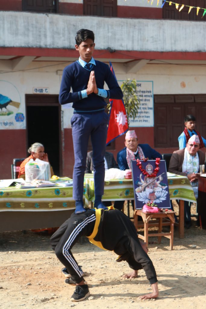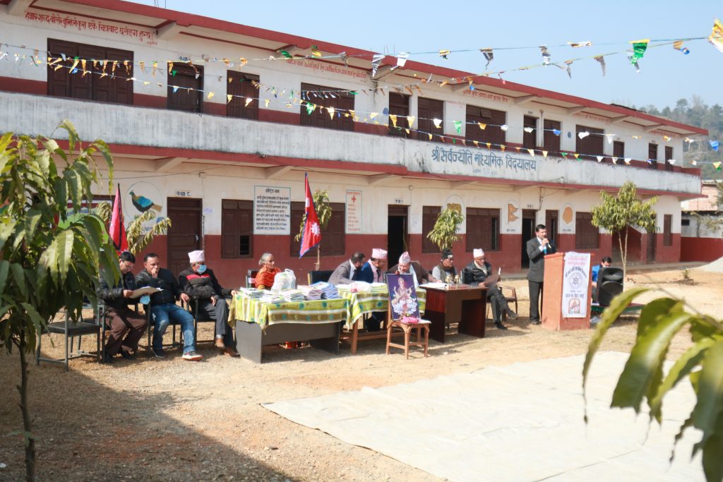 विद्यालयकी शिक्षिका मनु सापकोटा पौडेलले संचालन गरेको कार्यक्रममा विद्यालयका पूर्व प्रधानाध्यापक बिष्णुप्रसाद अधिकारीले स्वागत मन्तव्य र विद्यालयका प्रधानाध्यापक भरत काफ्ले विद्यालयको प्रगति विवरण पेश गर्नुभएको थियो । कार्यक्रममा बिद्यार्थीहरुले नृत्य तथा आफना विभिन्न कला कौशल प्रस्तुत गर्नुभएको थियो ।