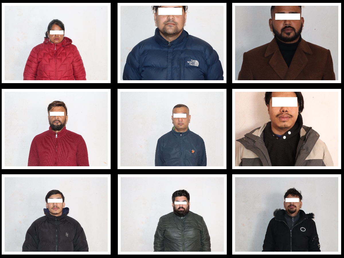 प्रहरीले चितवन भरतपुर १२ घर भएका हाल नक्साल बस्ने २५ वर्षीय सुमन ढकाल, धनुषा सबैला १२ घर भइ हाल चावहिल बस्ने ४२ वर्षीय विवेक उपाध्याय, मकवानपुर मनहरु ९ घर भइ हाल चितवन बस्ने ३३ वर्षीया भगवती उप्रेती, ललितपुरका २५ वर्षीय संजय महर्जनलाई पक्राउ गरेको छ ।
