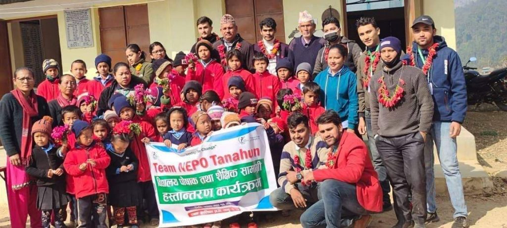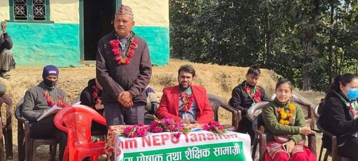 उक्त कार्यक्रम बिद्यालय व्यवस्थापन समितिका अध्यक्ष हरिबहादुर खत्रीको सभापतित्वमा भएको थियो । कार्यक्रममा उक्त विद्यालयका ४० जना विद्यार्थीहरुलाई शैक्षिक सामाग्री ( कपि, कलम, इलेजर, कटर ) तथा विद्यालय पोशाक ( जुत्ता र मोजा) वितरण गरिएको थियो । कार्यक्रममा टिम नेपो तनहुँका अध्यक्ष गोविन्द तिमल्सिनाले शुभकामना मन्तव्य दिदै टिम नेपोले सामाजिक कामहरुमा सबैसग हातेमालो गर्ने बताउनुभएको थियो ।