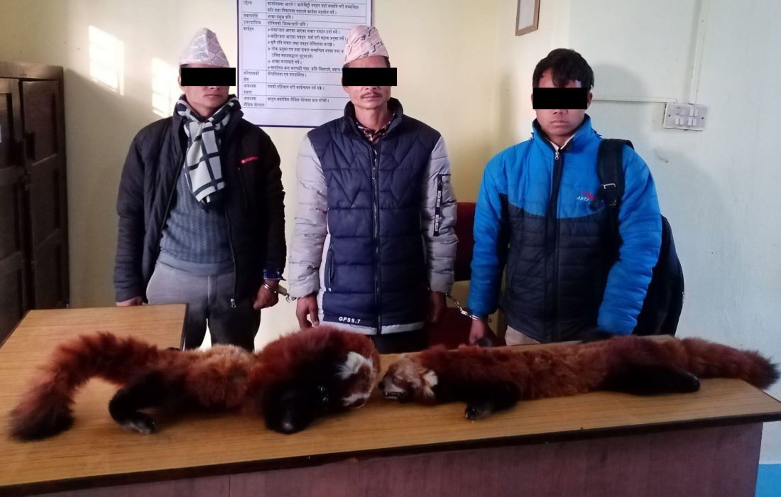 बाँके । बाँके जिल्लाकाे कोहलपुर नगरपालिका-१२ चप्परगौरीस्थित दैलेखी होटलबाट २ थान रेड पाण्डाको छाला सहित ३ जनालाई बुधबार दिउँसो प्रहरीले पक्राउ गरेको छ ।