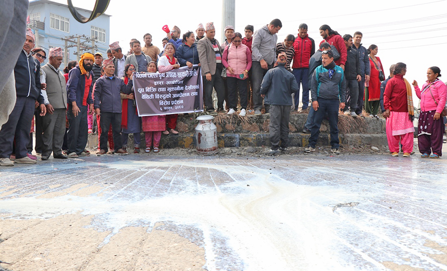 ६ फागुन । चितवन । चितवनका दूध उत्पादक किसानहरुहरुले दूधको रकम भुक्तानी र विक्रीवितरण सहजीकरणको माग गर्दै भरतपुरको केन्द्रीय बसपार्क चोकमा दूध पोखेर आन्दोलनमा उत्रिएका छन् ।