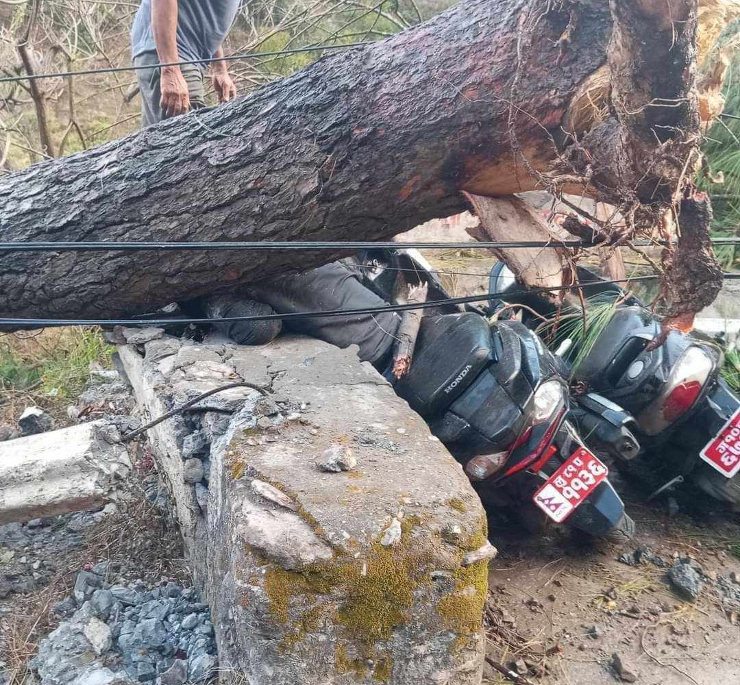 सल्लाको रुख पल्टेर च्याप्दा सिंजालीको घटनास्थलमै ज्यान गएको हो । लु ८१प ११३६ नम्बरको स्कुटर चालक भुवन पाल्पाबाट बुटवलतर्फ आउँदै थिए । हावाहुरीकै कारण सोही स्थानमै रोकिराखेको ग १०प ५७२१ नम्बरको स्कुटर र एक मोटरसाइकल पनि पल्टिएको छ ।