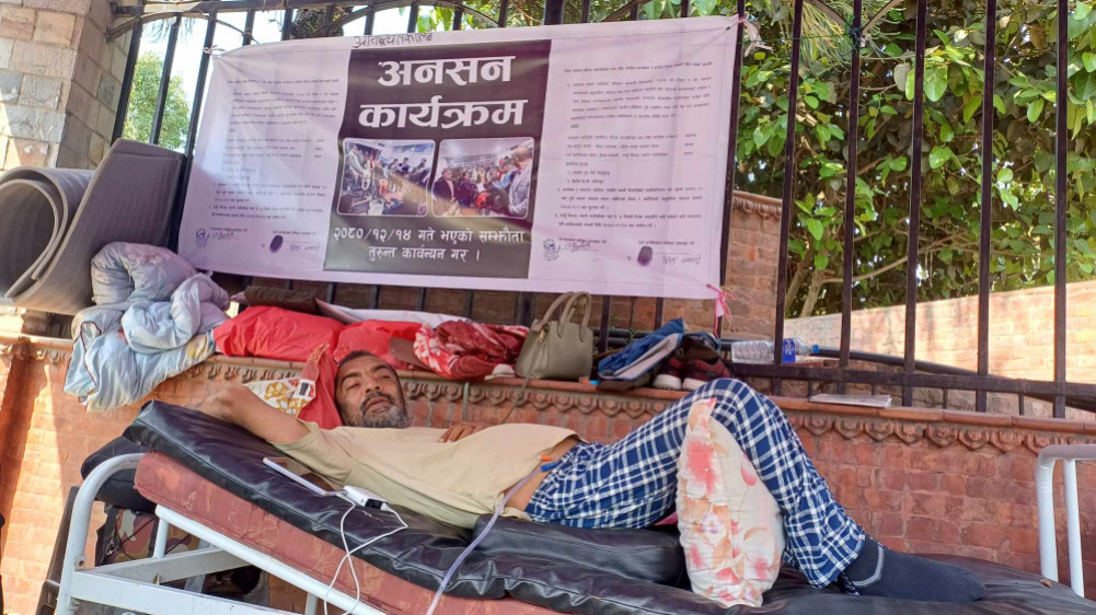 तर, सहमतिअनुसार पहिलो चरणमा लागू गरिने भनिएको प्रस्तावित कार्यक्रमको म्यादसमेत गुज्रिसकेकाले दबाब दिन अनशन थालेको भण्डारीले बताए । ‘महिला मन्त्रालयमा हरेक दिन फलोअप गर्दा काम भैरहेको छ भनेर सामुदायिक सहायता सेवा २०८१ वैशाख १ गतेबाट सुरुवात गर्ने भनेर तोकेको म्याद कटेको पनि दुई हप्ताभन्दा बढी भैसक्यो,’ उनले भने, ‘कार्यान्वयनमा भएको ढिलाइका कारण धर्नालाई अनशनमा परिणत गर्न बाध्य भएको हुँ ।’