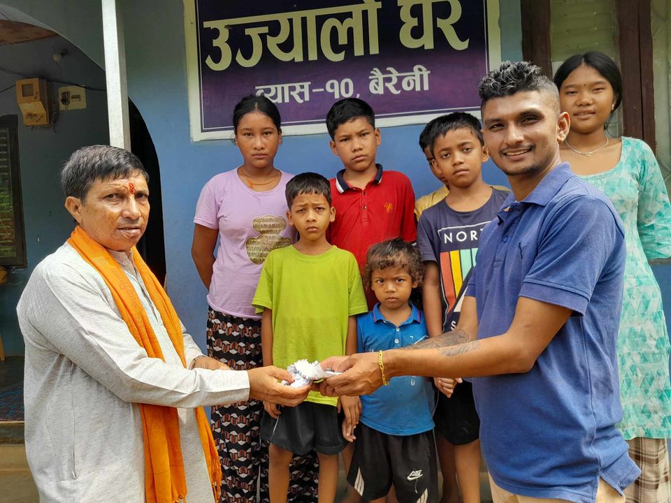 त्यसैगरि ढुगांनाले ७ जना बालबालिकालाई संरक्षण दिएर राखेको उज्यालो घरमा १ हजार १ सय पाँच रुपैया र बालबालिकालाई चकलेट उज्यालो घरका संस्थापक सागर घिमिरेलाई हस्तान्तरण गर्नुभएको हो । समाजमा रहेपछि आफुले केहि न केहि योगदान दिनुपर्ने भन्दै म बदलिए घर समाज बदलिन्छ हामी बदलियौ भने देश बदलिन्छ भन्दै ढुगाांनाले आउदाँ दिनहरुमा पनि आफु सर सहयोग र समाजसेवामा लागिरहने बताउनुभएको थियो ।
