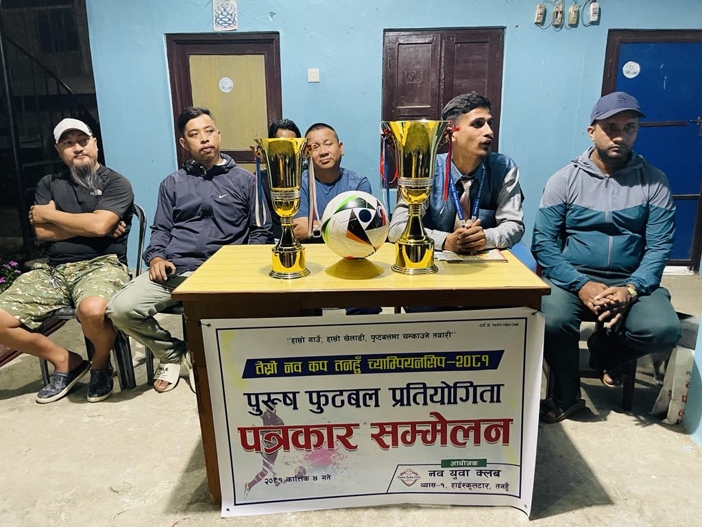पत्रकार सम्मेलनमा क्लबका निर्वतमान अध्यक्ष सोनम तमाङले दोस्रो नव कप पनि सव्य र भब्य रुपमा सम्पन्न गरेको जानकारी दिएका थिए साथै तमाङ तेश्रो नव कप पनि सबैको साथ सहयोगले सब्य र भव्य रुपमा सम्पन्न हुनेमा विश्वास लिएको बताएका थिए ।टिम प्रवेश शुल्क १० हजार रहेको र प्रथम हुनेलाई १ लाख ५० हजार ८१, दोस्रो हुनेलाई ७५ हजार ८१ रुपैयाँ र सेमिफाईनबाट प्रत्येक खेलको म्यान अफ द म्याच पुरस्कारको पनि ब्यवस्था भएको पनि उक्त पत्रकार सम्मेलनमा जानकारी दिईएको थियोे ।