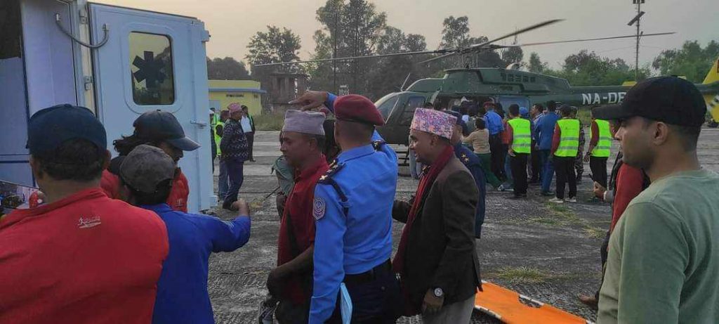 नेपाली सेनाको हेलिकप्टरमार्फत घाइतेमध्ये ८ जनालाई प्रदेश अस्पताल, सुर्खेत पुर्याइएको छ भने बाँकी ५ जनालाई पनि अस्पताल ल्याउने तयारी भइरहेको जानकारी दिए ।
