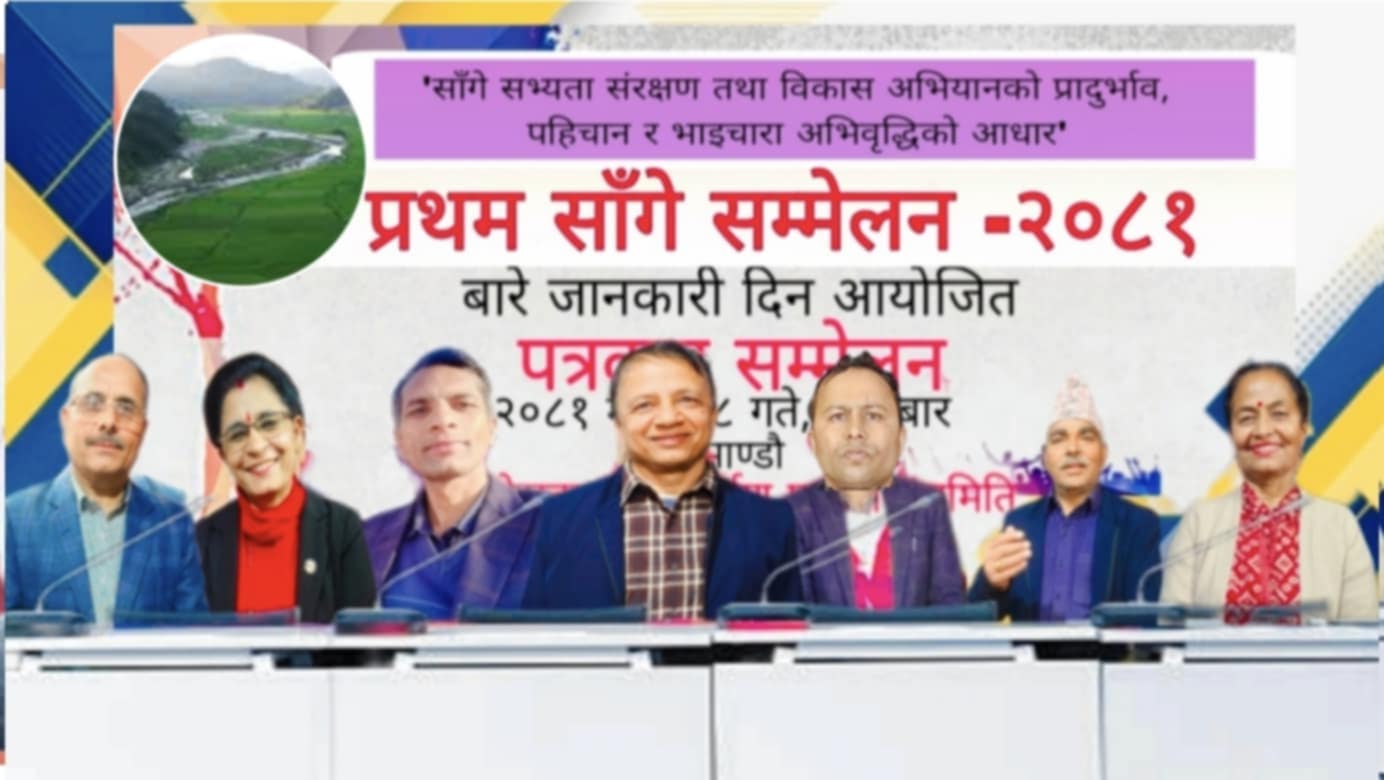 तनहुँ। तत्कालिन स्याम्घा गाविस हालको व्यास ६ रहेको साँगे गाउँ र त्यस वरपरका गाउँ समाजले अपनाएको साँगे सभ्यताको ऐतिहासिक महत्त्वलाई उजागर गर्दै समुदायलाई एकताबद्ध गर्ने अभिप्रायका साथ आगामी फाल्गुण ३ गते प्रथम साँगे सम्मेलन २०८१ आयोजना गरिने भएको छ। साँगे दर्पण प्रकाशन समितिको संयोजनमा भर्चुअल माध्यमबाट यस सम्मेलन हुन लागेको हो । माघ २८ गते काठमाण्डौमा पत्रकार सम्मेलन आयोजना गरि साँगे सम्मेलनमा ‘साँगे सभ्यता संरक्षण तथा विकास अभियान’ को औपचारिक घोषणा गरिने कार्यक्रम रहेको पनि जानकारी गराईएको छ ।