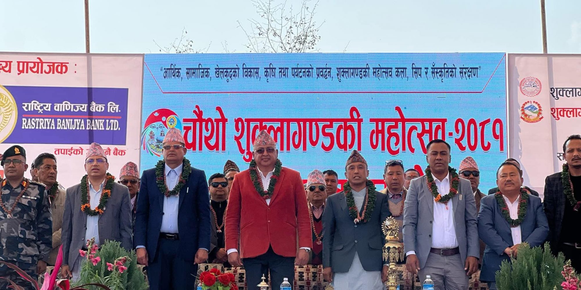 ९ फागुन । तनहुँ । तनहुँको शुक्लागण्डकी–५ बेलचौतारास्थित भानुभक्त बहुमुखी क्याम्पसको खेल मैदानमा चौथो शुक्लागण्डकी महोत्सव शुरु भएको छ । शुक्लागण्डकी नगर उद्योग वाणिज्य संघद्धारा आयोजित महोत्सवको पूर्व मन्त्री एवम् तनहुँ क्षेत्र नं. २ का प्रतिनिधी सभा सदस्य शंकर भण्डारीले शुक्रवार उद्घाटन गरे ।