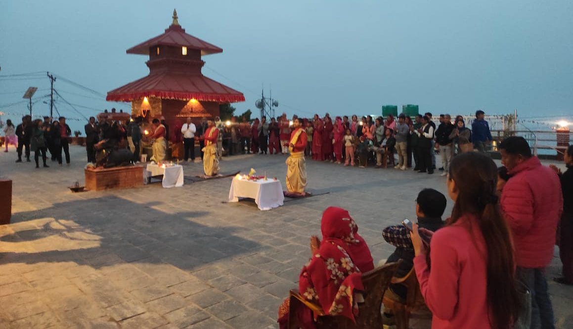 पाेखरा । प्रसिद्ध पर्यटकीय स्थल सराङकोटधाममा रहेकाे कैलाशेश्वर महादेव प्राङ्गणमा आरती पूजा हुन थालेका छ । फागुनकाे अन्तिम साेमबारदेखि मन्दिर प्राङ्गणमा आरती पूजाकाे थालनी गरिएकाे हाे ।