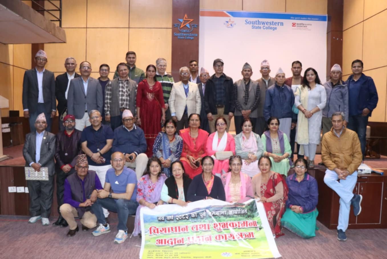 काठमाडौँ, चैत ३० । साँगे सभ्यता संरक्षण तथा विकास अभियानको आयोजनामा नव वर्ष २०८२ को उपलक्ष्यमा चियापान तथा शुभकामना आदान–प्रदान कार्यक्रम काठमाडौँको वसुन्धरास्थित साउथ वेस्टर्न स्टेट कलेजको सभाहलमा सम्पन्न भएको छ।