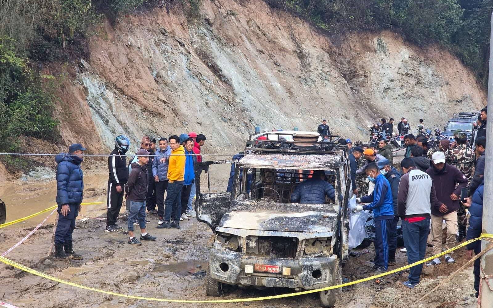 आज बिहान करिब ५ः०० बजे विद्युत्को पोलबाट चुँडिएको तार सडकमा झरेको र उक्त तारमा बलेरो गाडी अल्झिँदा अचानक आगो लागेको प्रारम्भिक अनुसन्धानमा देखिएको प्रहरीले जनाएको छ ।