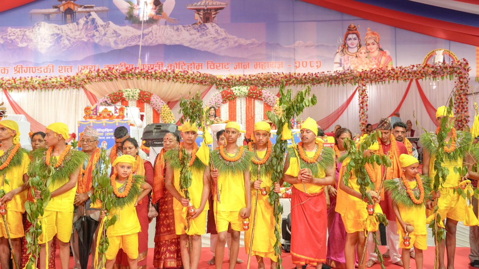 हवन कुण्डको मुल मण्डपमा महायज्ञका सङ्कल्पकर्ता वाल योगेश्वर विजय श्रीकृष्ण मूर्तिजीका बुबा मनिराम भण्डारी र आमा जानका भण्डारी रहेका छन् भने अरू मण्डपमा ३÷३ जना ब्राह्मणले नृत्य हवन गरिरहेका छन् ।