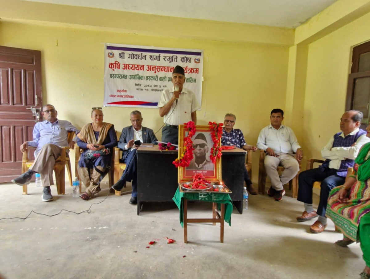 गोवर्धन शर्मा स्मृति कोषका अध्यक्ष एवं संविधान सभासदस्य रामचन्द्र पोखरेलले परम्परागत कृषिलाई जोगाउन पर्छ भनेर कृषक र शिक्षकलाई संगै राखेर तालिम प्रदान गरिएको बताउनुभयो ।