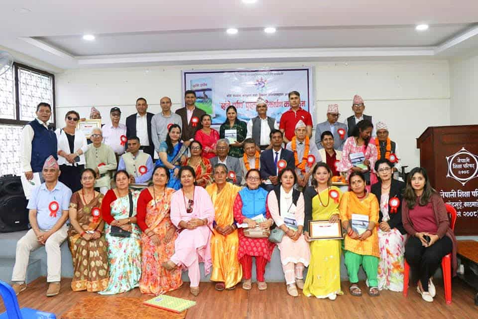 काठमाण्डौ । साँगे सभ्यता संरक्षण तथा विकास अभियानद्धारा प्रकाशित साँगे दर्पण पुस्तक लोकार्पण गरिएको छ । जेठ १० गते, शनिवार काठमाडौं सोह्रखुट्टे स्थित लेखनाथ साहित्य सदनमा एक कार्यक्रमको आयोजना गरी पुस्तक लोकार्पण गरिएको हो । प्रमुख अतिथि नेपाल सरकारका पूर्व सचिव पुरुषोत्तम ओझा, अख्तियार दुरुपयोग अनुसन्धान आयोगका पूर्व आयुक्त एवं पूर्व न्यायधिस कृष्णबल्लभ काफ्ले, पूर्व न्यायधिस एवं काठमाण्डौं विश्वविद्यालय, कानुन संकायका डिन डा. ऋषिकेश वाग्ले, स्वास्थ्य बिमा बोर्डका कार्यकारी निर्देशक एवं गण्डकी प्रदेश नीति तथा योजना आयोगका पूर्व उपाध्यक्ष डा. रघुराज काफ्ले, साँगे सभ्यता संरक्षण तथा विकास अभियानका संयोजक सुरेन्द्र वाग्ले र साँगे दर्पण पुस्तकका सम्पादक एवं अभियानका महासचिव सरोज ओझा, अभियानका कार्यसमिति सदस्यहरु ई. ठाकुर प्रसाद पण्डित, हरिराज वाग्ले, बालवती शर्मा बाला, चन्द्रा न्यौपाने, गंगाधर भट्टराई र पदेन सदस्य एवं अष्टे«लिया क्षेत्रका संयोजक डा . राम पण्डितले संयुक्त रुपमा पुस्तक लोकार्पण गर्नुभएको हो । सो अवसरमा साँगे क्षेत्र थाँतथलो रही राष्टिय रुपमा चर्चा कमाउन सफल तथा साँगे क्षेत्रको विकासमा उल्लेख्य योगदान पुर्याउनुहुने अग्रज व्यक्तित्व नेपाल सरकारका पूर्व सचिव पुरुषोत्तम ओझा, अख्तियार दुरुपयोग अनुसन्धान आयोगका पूर्व आयुक्त एवं पूर्व कृष्णबल्लभ काफ्ले, पूर्व न्यायधिस एवं काठमाण्डौं विश्वविद्यालय, कानुन संकायका डिन डा. ऋषिकेश वाग्ले, स्वास्थ्य बिमा बोर्डका कार्यकारी निर्देशक एवं गण्डकी प्रदेश नीति तथा योजना आयोगका पूर्व उपाध्यक्ष डा। रघुराज काफ्ले, नेपाल सरकारका पूर्व सहसचिव ई। माधवप्रसाद ओझा, वरिष्ठ अधिवक्ता प्राध्यापक डा। गान्धी पण्डित, रेडियो नेपालका पूर्व नायब कार्यकारी निर्देशक ई। श्रीभद्र वाग्ले, अग्रज एवं कृषक केदारनाथ वाग्ले, उद्योगपति एवम समाजसेवी पशुपति न्यौपाने, सामाजिक एवं राजनीतिक व्यक्तित्व बाबुराम भण्डारी, शिक्षासेवी एवं साहित्यिक व्यक्तित्व माधवप्रसाद भारद्धाज, कृषि विज्ञ दीपेन्द्रकेशरी न्यौपाने, चलचित्र पत्रकार एवं समिक्षक यज्ञस पण्डित, सामाजिक एवं राजनीतिक व्यक्तित्व भूवनेश्वरी पण्डित अधिकारी, अग्रज महिला सरस्वती न्यौपाने, पूर्व उपसचिव दामोदर भण्डारीलाई साँगे गौरव सम्मान र दाता मध्ये गोविन्दराज वाग्लेलाई साँगे दर्पण उकृष्ट दाता सम्मान र बलबिक्रम शाहीलाई साँगे दर्पण दाता सम्मानबाट विभुषित गरियो । उहाँहरुलाई साँगे सभ्यता संरक्षण तथा विकास अभियानका संयोजक सुरेन्द्र वाग्ले र साँगे दर्पण पुस्तकका सम्पादक एवं अभियानका महासचिव सरोज ओझाले माला र सम्मानपत्रले सम्मान गर्नुभएको थिय