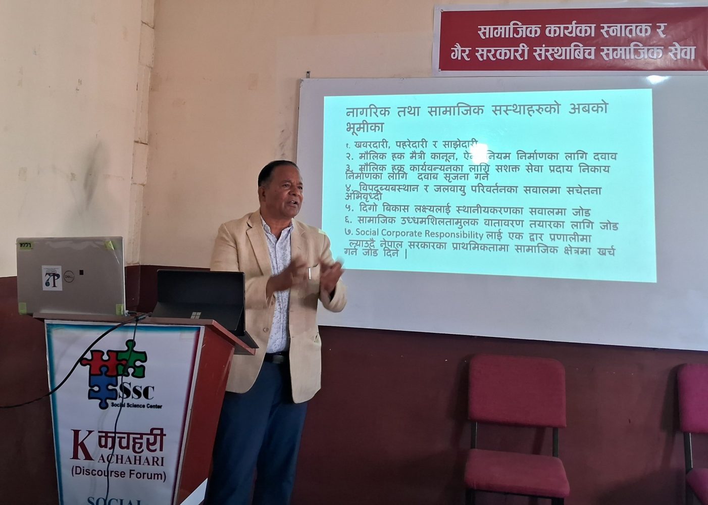 लेकसिटी कलेज एन्ड रिसर्च सेन्टरअन्तर्गत समाज विज्ञान केन्द्रले आयोजना गरेको ‘सामाजिक सेवामा सामाजिक कार्यका स्नातक र गैरसरकारी संस्था’ विषयक सहयाेग सम्वाद कार्यक्रममा उनीहरुले यसबारे चर्चा गरेका हुन् ।