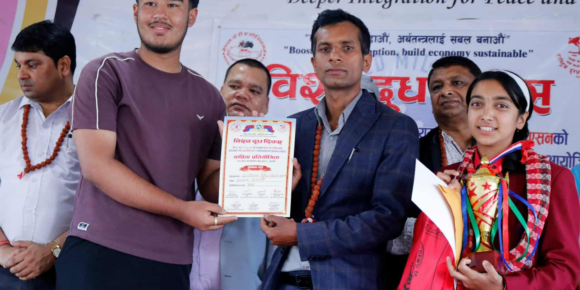 कविता प्रतियोगितामा इन्टरनेशनल जोसेफ पब्लिक स्कूलकी छात्रा भावना बराल प्रथम, सेन्ट जर्ज स्कुलका आर्यन शाही द्वितीय, युरेका हाई स्कुलकी जेसिका थापा तृतीय र दिव्यज्ञान उच्च माध्यमिक विद्यालयकी सभ्यता कार्की तथा पिक पाइन्ट एकेडेमीकी प्रान्शु रावत सान्त्वना विजेता घोषित भए। उनीहरूलाई नगद, प्रमाणपत्र, मेडल, शिल्ड तथा दुग्धजन्य वस्तुहरू प्रदान गरिएको थियो।