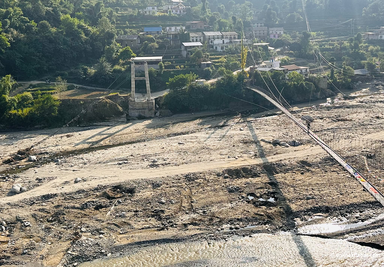 (बाढीले बगाएको पुल । यही पुलको सामान बेचिएको हो ।)