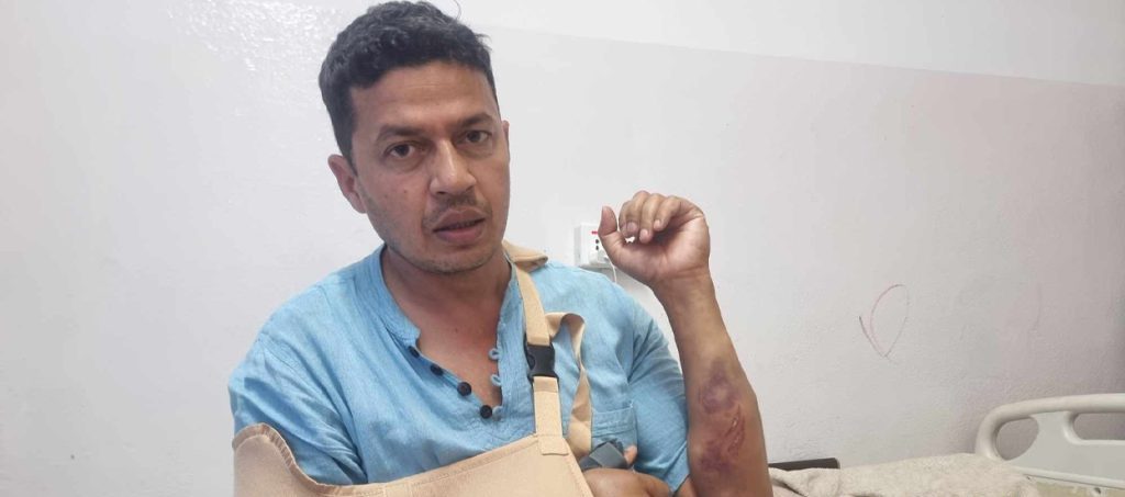 वडाध्यक्ष सुनिल खनालसहितले फलामको रड प्रहार गरेर उनको एउटा हात भाँचिदिएका छन् र अर्को हातमा गम्भीर चोट लागेको छ । हात केही दिनमा अप्रेसन गर्नुपर्ने चिकित्सकले बताएका छन् । जुन हातका औंला उठाउँदै उनले वालिङ नगरपालिका-१० मा भइरहेको आँधिखोला दोहनको प्रश्न गरेका थिए ।