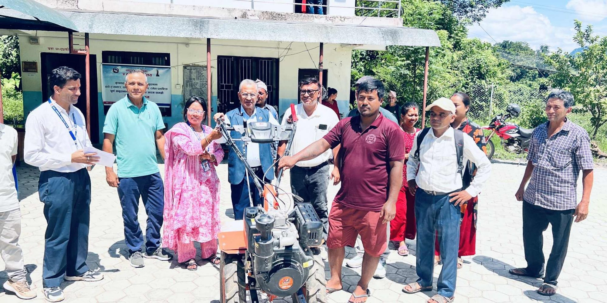तनहुँ । तनहुँको व्यास नगरपालिका वडा नंं ५ को कार्यालयद्धारा वडावासीलाई ६ लाख बराबरका सामाग्रीहरु हस्तान्तरण गरेको छ । व्यास नगरपालिकाका प्रमुख बैकुण्ठ न्यौपानेको आतिथ्यतामा वडा कार्यालयले कृषकहरुका लागि ८० प्रतिशत अनुदानमा ७ थान हाते ट्याक्टर, पानी तान्ने मोटर पाईप, टनेल प्लाष्टिक र पूर्ण अनुदानमा पंंच्बाजा बजाउने समुहका लागि पंचेबाजा सेट, आरनको काम गर्नेका लागि आरनका सामाग्रीहरु वितरण गरेको हो । ति सामाग्रीहरु हस्तान्तरण गर्दै प्रमुख अतिथि न्यौपानेले कृषकहको लागि सहज हुने हिसाबले नगरपालिकाले काम गरिरहेको र वडा नंं ५ ले यसरी कृषकको हितको लागि हाते ट्याक्टर लगायतका सामाग्री र कला र संस्कृति संरक्षणको लागि पंचेबाजा वितरण गरकोमा खुशी लागेको बताएका थिए । कार्यक्रमका सभापति एवं वडा अध्यक्ष बिष्णुकुकमार श्रेष्ठ हिमालले वडा कार्यालय अझै विभिन्न कार्यक्रमहरु ल्याउने योजनामा रहेको बताएका थिए । वडा सदस्य केशरी थापाले स्वागत मन्तव्य व्यक्त गरेको कार्यक्रममा वडा सदस्यहरु सुन्दर वाग्ले, खिम बहादुर थापा लगायतका महानुभावहरुको उपस्थिति रहेको थियो । कार्यक्रम वडा सचिव विश्वनाथ पौडेलले संचालन गरेका थिए ।