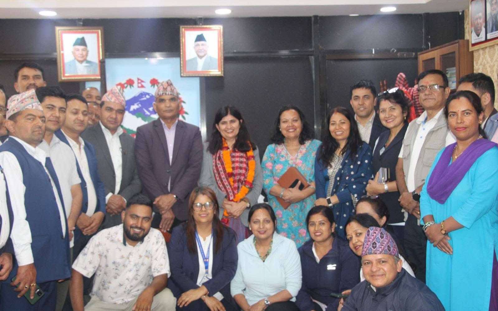 संघीय मामिला तथा सामान्य प्रशासन मन्त्रालयमा आयोजित भेटघाट कार्यक्रममा संगठनका पदाधिकारीहरूले मन्त्री न्यौपानेलाई फूलगुच्छा प्रदान गर्दै आगामी कार्यकाल सफल र उपलब्धिमूलक रहोस् भन्ने शुभकामना व्यक्त गरे।
